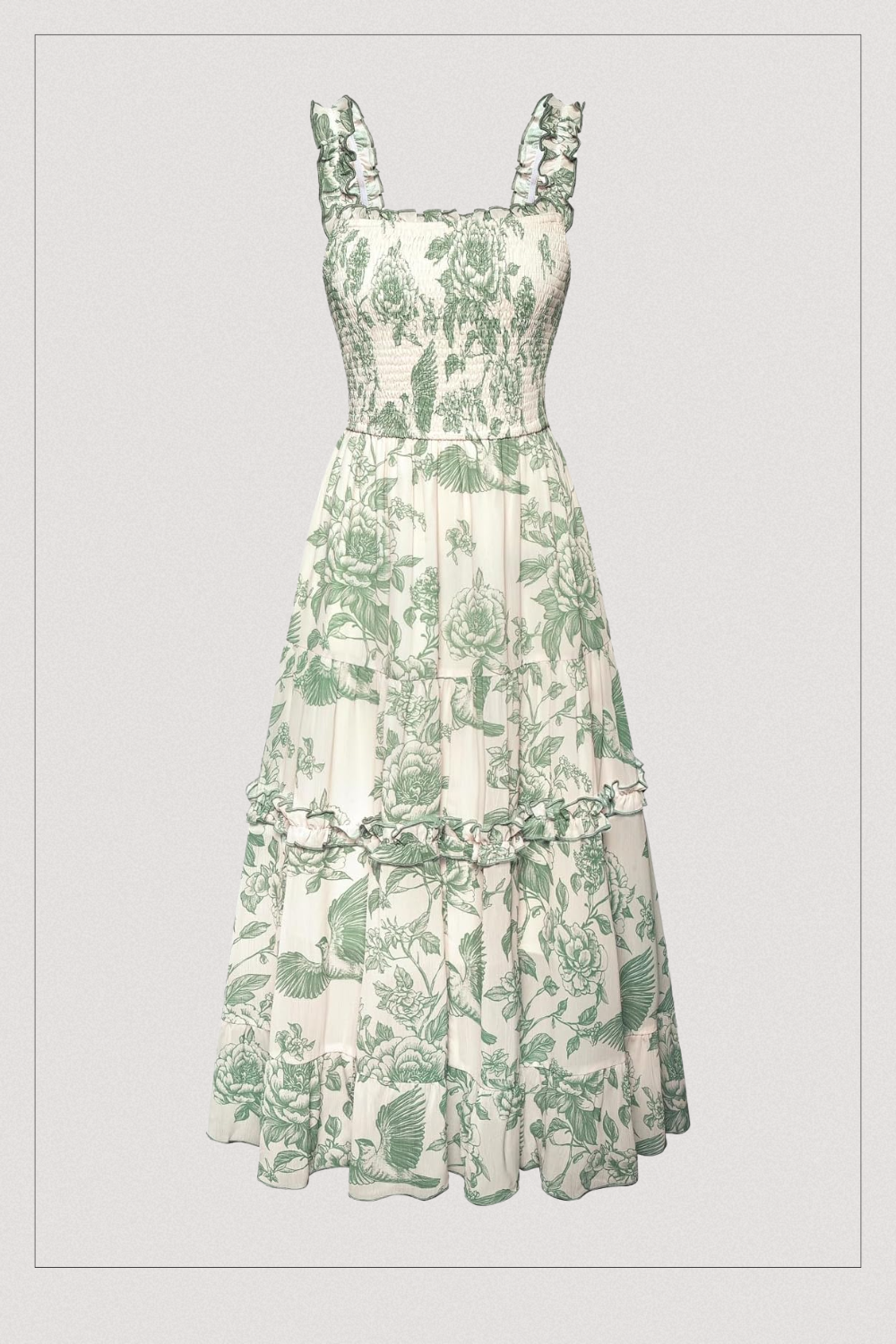 If you prefer something more romantic and flowy, the green floral tiered dress is such a statement — but still wearable.